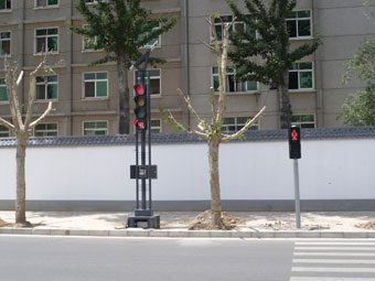 2011年6月6日我公司工作人員赴西安雁南三路安裝調試JXG太陽能組合式交通信號燈,JXG太陽能組合式交通信號燈的光伏(太陽能電池)發電系統具有安全可靠、無噪聲、無污染、制約少、故障率低、不需外界交流電源、維護簡便等優點。JXG太陽能組合式交通信號燈系統采用太陽能電池板和蓄電池供電,無需外部能源(交流AC220V)。系統帶有自動調光功能,在陰天和夜間進行減光,以節約耗電量,延長工作時間。